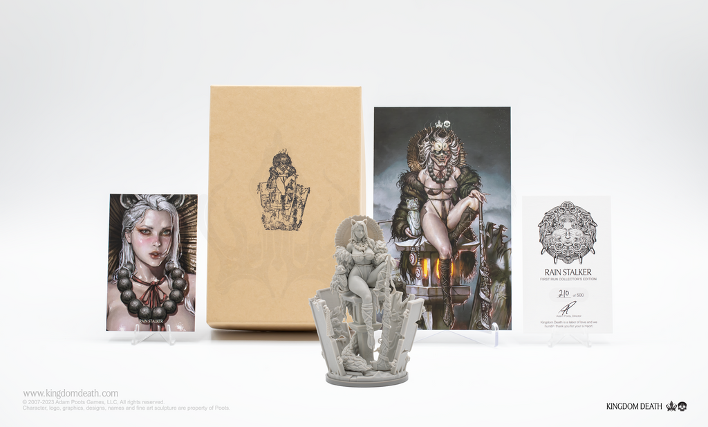 Rain Stalker is packaged in a hand-stamped kraft box, and includes: