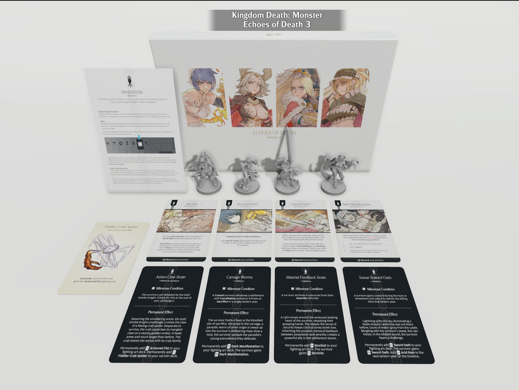This set includes prototypes of Strain System mechanics. Add your Strain Cards to your game, if you reach their unique milestone conditions, your gameplay changes forever by adding new fighting arts to your game.