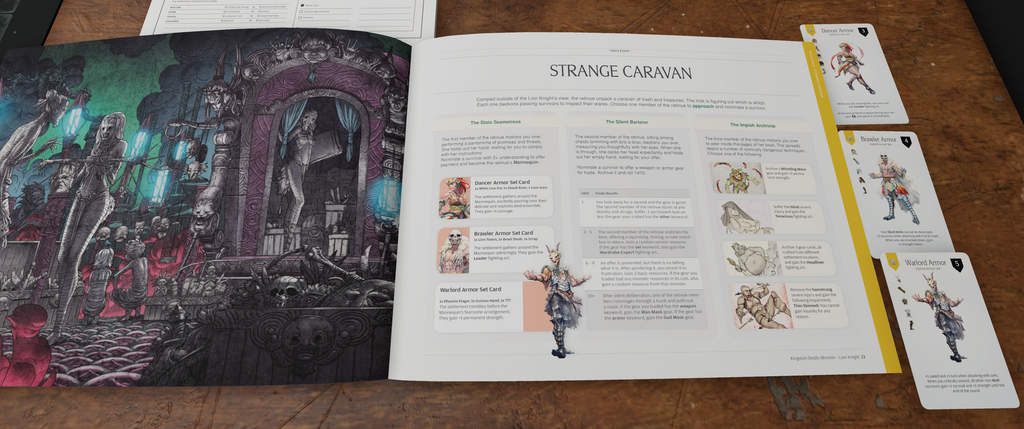 This expansion is designed to be added to the Kingdom Death: Monster core game. It contains: