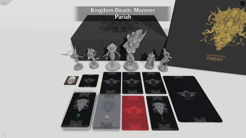 The Pariah expansion has been lovingly recreated and is ready for play in the Dwelling. Each of the included digital models feature hand made topology (no automated low poly creation here!) and textures to simulate that authentic Kingdom Death hard plastic look and feel. Each an efficient mastering in its own right, with dynamic LOD so they look amazing from any zoom level.