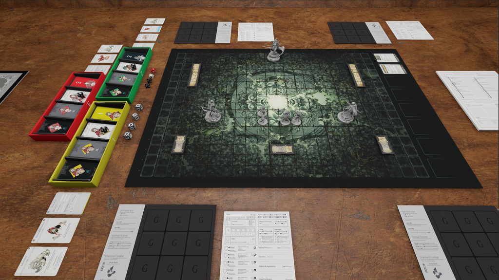 The Red Witches expansion has been lovingly recreated and is ready for play in the Dwelling. Each of the included digital models feature hand made topology (no automated low poly creation here!) and textures to simulate that authentic Kingdom Death hard plastic look and feel. Each an efficient mastering in its own right, with dynamic LOD so they look amazing from any zoom level.