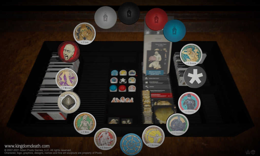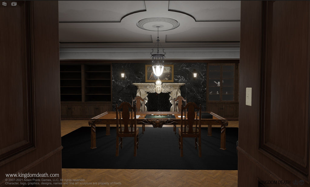 Gather in the eerie, liminal space of the dwelling in the deep, dark woods. Kingdom Death: Simulator is the perfect setting for a virtual game night with far-flung friends. Unlock the doors and enter a game room dripping with atmosphere, tailor-made to play Kingdom Death: Monster by the light of the laternplace.