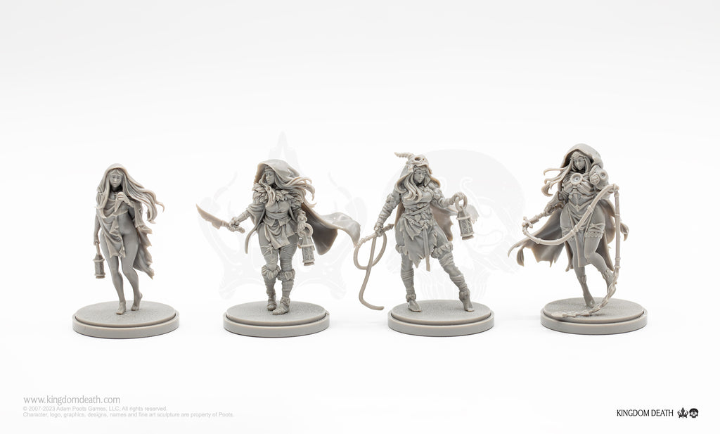 - 4 x Glow Legendary Character plastic miniatures with differing armor sets