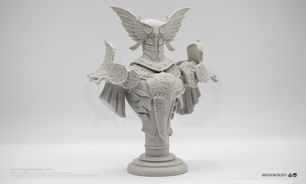 The exquisite Flower Knight, its magnificent countenance captured in a beautiful bust that highlights the intricacies of the Flower Knight's design. Magnifying the dynamic details of the original sculpt and adapting it for the format. Perfect for painting or collecting.