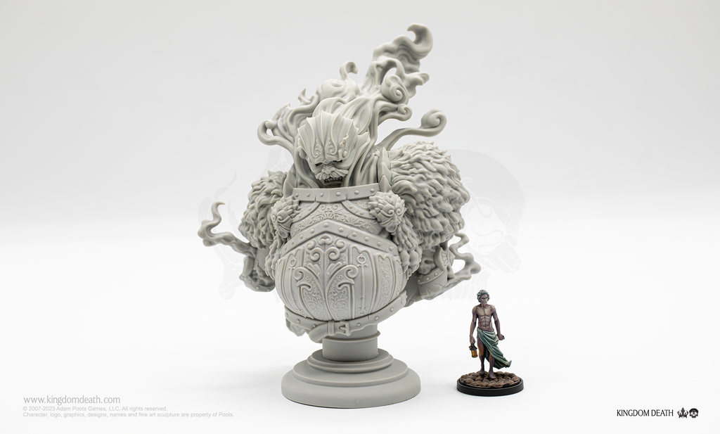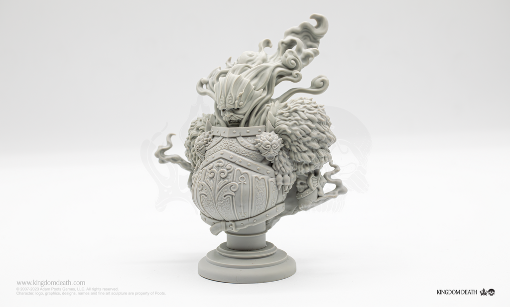 The ultimate Gold Smoke Knight captured in its smoldering resplendence, a huge bust dripping with detail. Magnifying the dynamic details of the original sculpt and adapting it for the format. Perfect for painting or collecting.