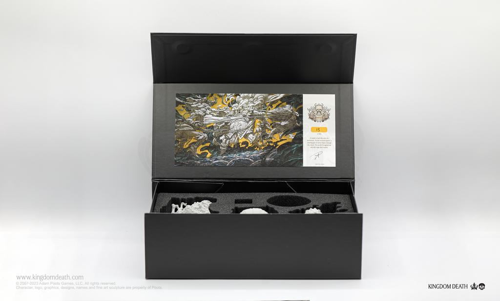 - 1x Oversized signed and numbered collector's card packaged into a black envelope (not mounted to the box like the photo shows, mount it if you like!)