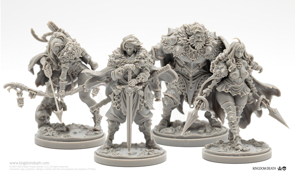 In celebration of 15 years since the release of the first Kingdom Death figure, we revisit the starting survivors of Monster, Allister, Zachary, Lucy, and Erza. Fifteen lantern years into their existence the pursuit of survival is replaced with a quest for perfection. Life and death still remain balanced on the edge of dice roll but the grizzled survivors have endured beyond expectation.
