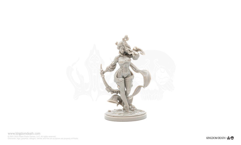 Basara comes with 2 miniatures. A painters scale model kneeling, perfect for hobbyists and a players scale model for gamers looking for a fun survivor stand-in.