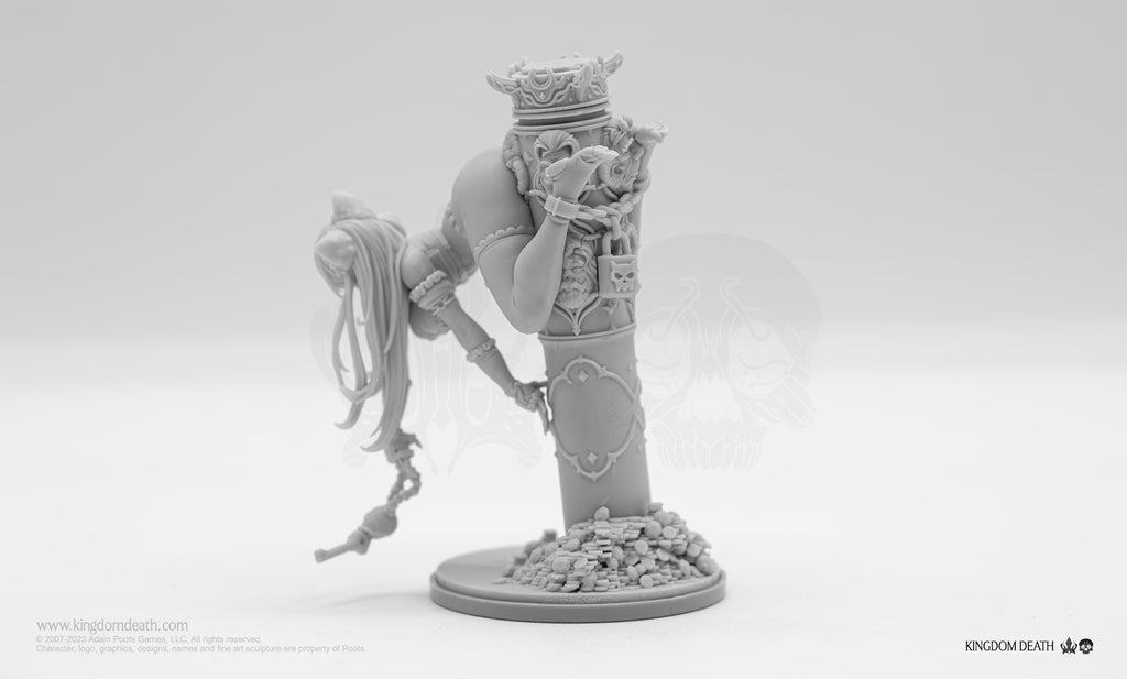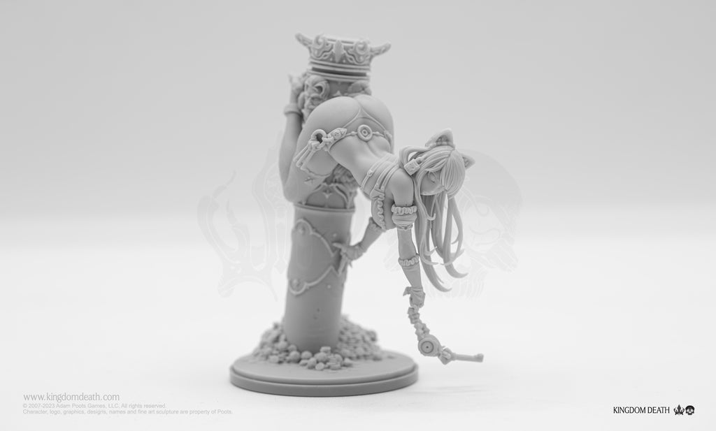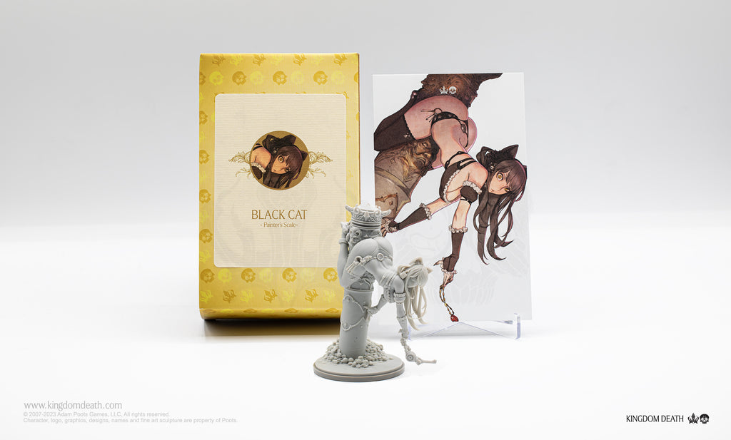 A sculptural delight, Black Cat is presented in painters scale perfect for collectors and hobbyists. Black Cat hovers above the treasury floors, avoiding the infectious touch of the golden hoard. Yet the siren call of wondrous delights deafens her. She reaches out to snatch a promising key.